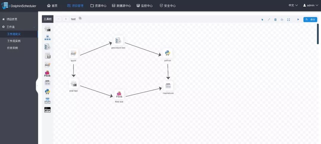 支持丰富的任务类型:Shell、MR、Spark、Flink、SQL(mysql、postgresql、hive、sparksql)、Python、Http、Sub_Process、Procedure等