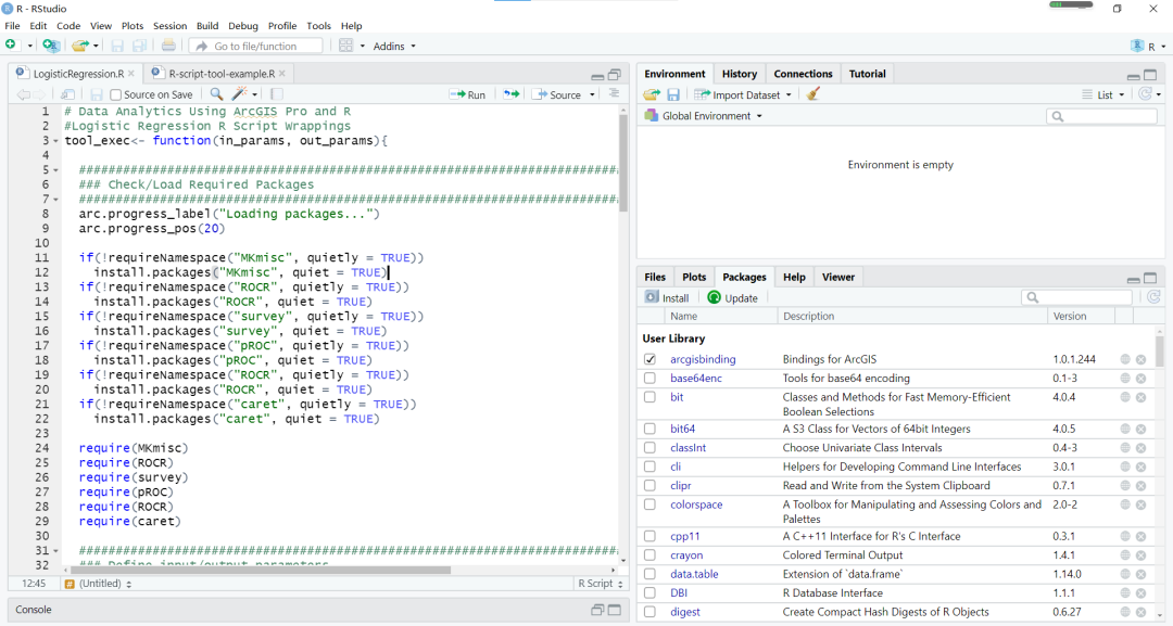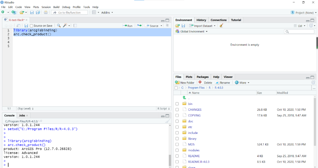 上图显示arcgisbinding安装完成,可以开始在RStudio使用。
