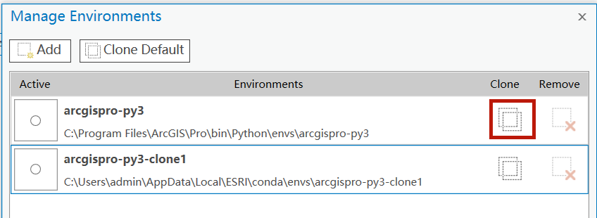 在ArcGIS Pro中使用arcgisbinding,需要在设置中,克隆ArcGIS Pro的环境: