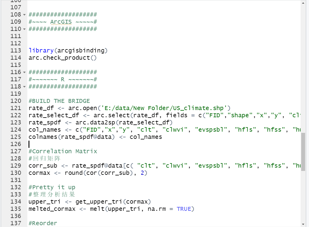 ArcGIS平台能够支持Jupyter notebooks,从而帮助我们更好地建立模型范式,分享和扩展空间分析。Arcgisbinding作为一个R扩展包,能够将空间数据从ArcGIS平台迁移到R生态系统,这一功能对于空间数据在R中的统计和分析十分便利。下面将使用GCM(General Circulation Models)数据进行分析和预测未来的气候变化趋势。