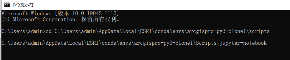 4. 在cmd中将地址添加到上述地址,在命令提示符中,粘贴之前复制的路径,然后在路径末尾输入 jupyter-notebook,打开 notebook: