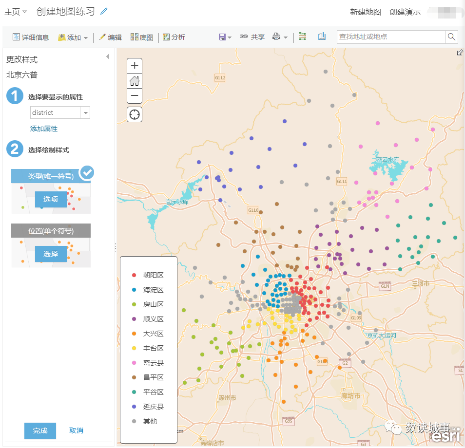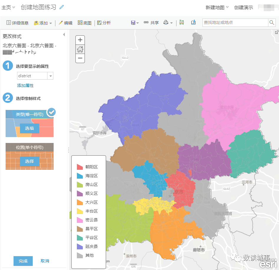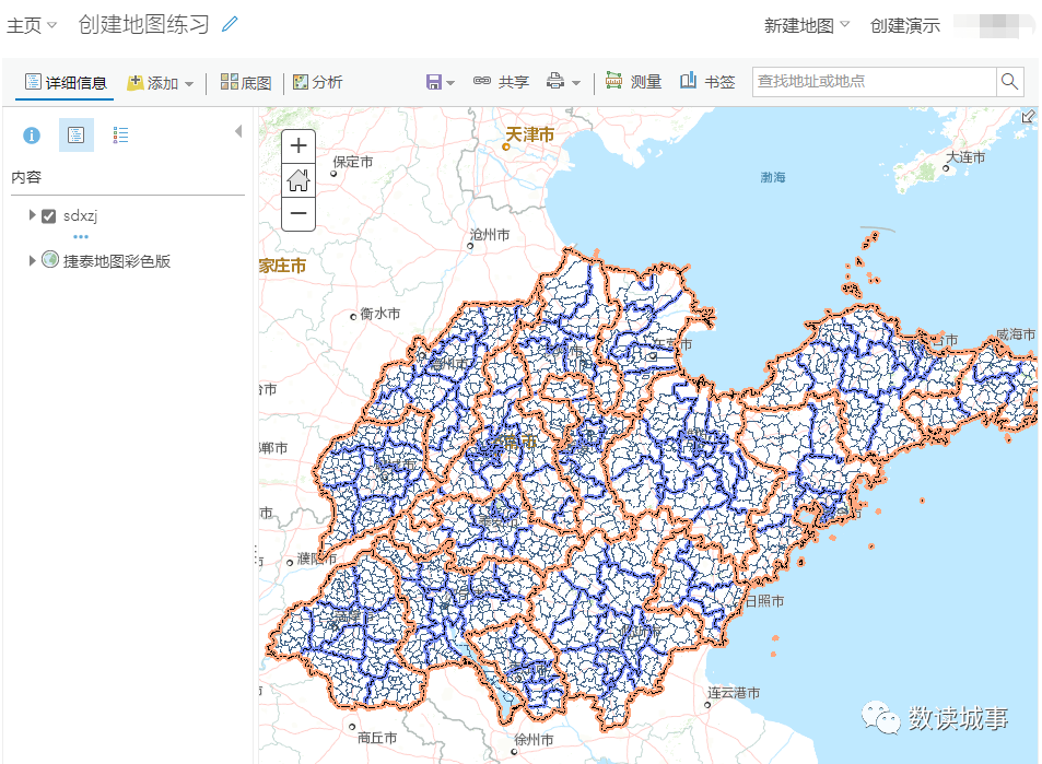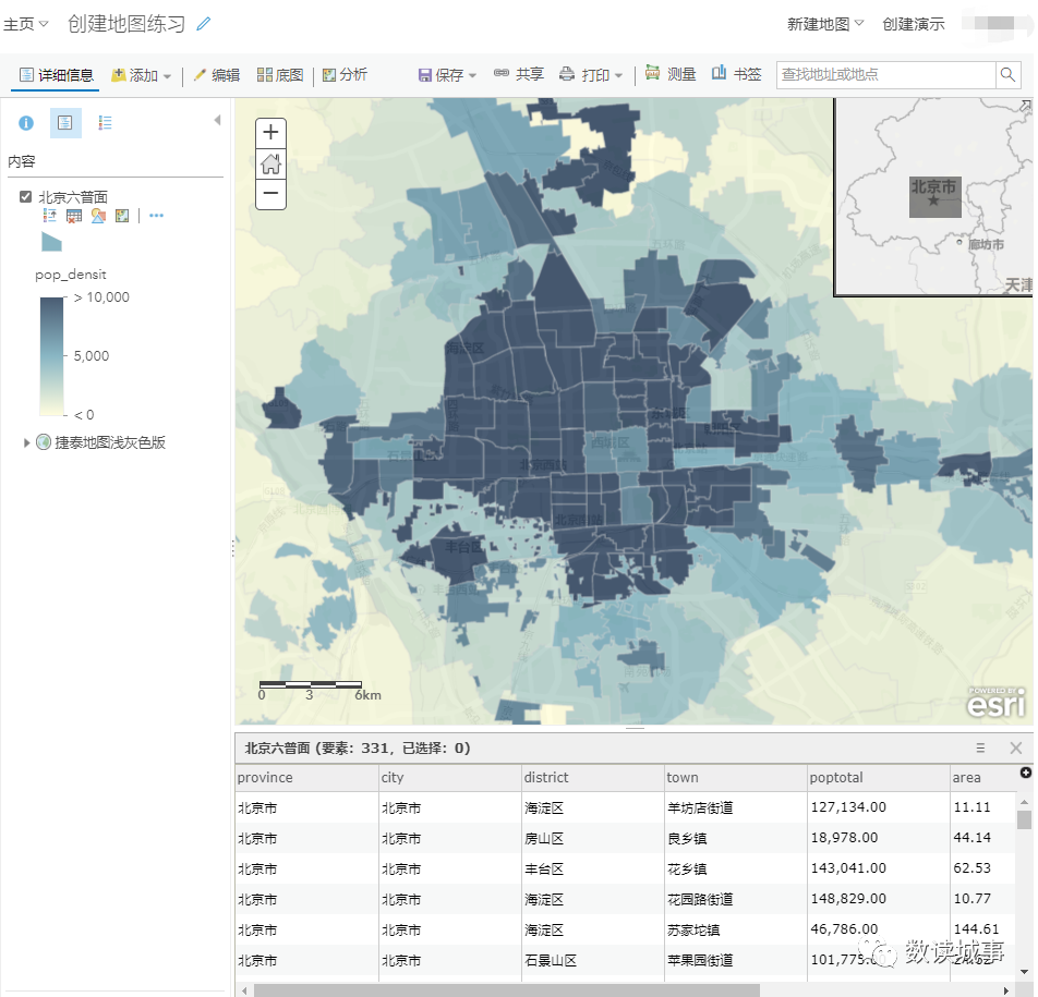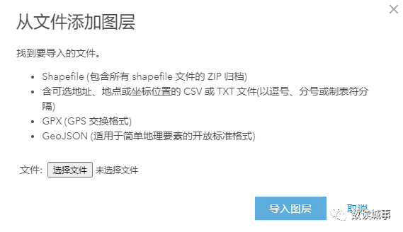 值得注意的是,shapefile文件需要打包成ZIP文档。我们选择一个本地文件"北京六普面.zip"上传。(练习文件可在公众号后台回复“online01”)选择文件后导入图层。