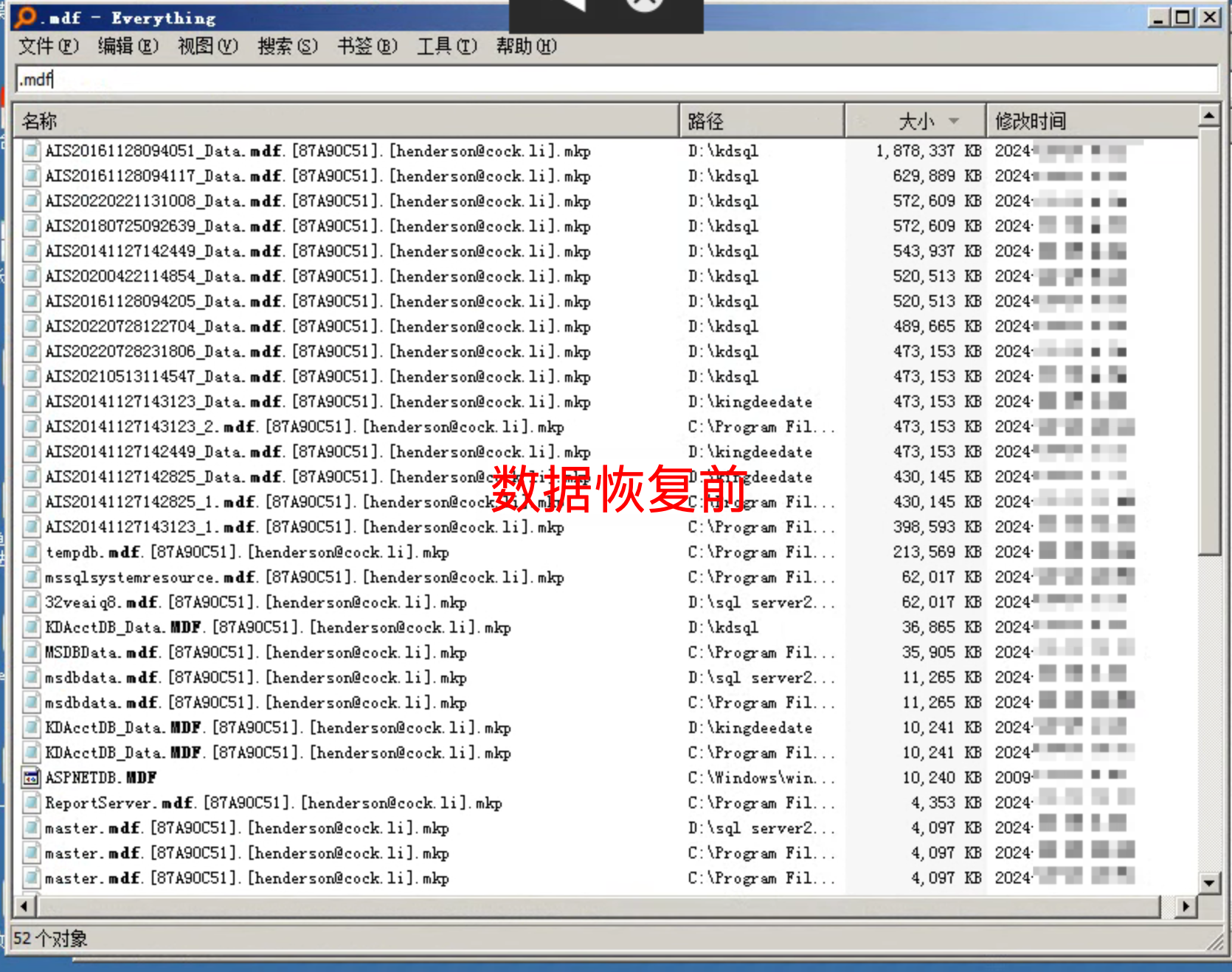 - 高度加密:.[henderson@cock.li].mkp、[datastore@cyberfear.com].mkp、[hudsonL@cock.li].mkp、 [myers@airmail.cc].mkp勒索病毒采用复杂的加密算法对文件进行加密,确保文件无法被未授权的用户访问或解密。