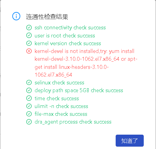 2024-04-24 08:44:12.000782846 [WARN] [dbd]: kernel-devel-3.10.0-1160.el7.x86_64 is not installed, can not use agent special feature,you can try yum install kernel-devel-3.10.0-1160.el7.x86_64