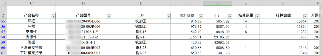 前两天以前财审的同事发我一个测算表,让我帮他看看相同“产品图号”和“工序”的结算金额是不是都是相同的。