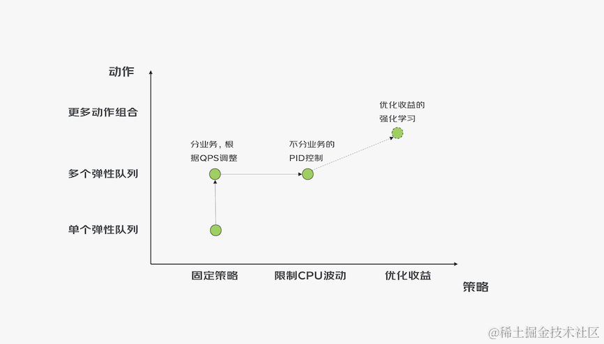 •糟糕的策略会对线上系统带来无可挽回的损失。系统使用离线数据预训练弹性系统。在实际运行中,弹性策略会在系统指定的安全边界内生效。同时,完备的熔断机制也保证了弹性策略失效后会由更稳定的保守策略接管系统。
