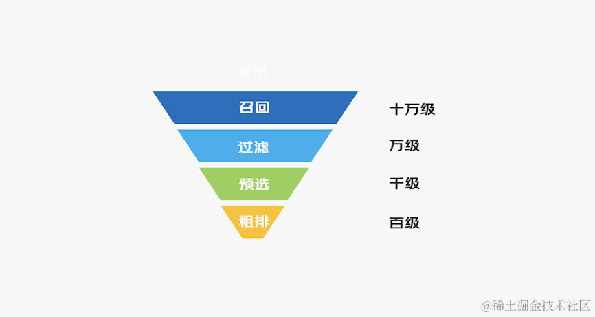 Fig 2:检索系统内部OP处理的数据量呈现漏斗状,用于平衡海量数据和有限算力之间的矛盾