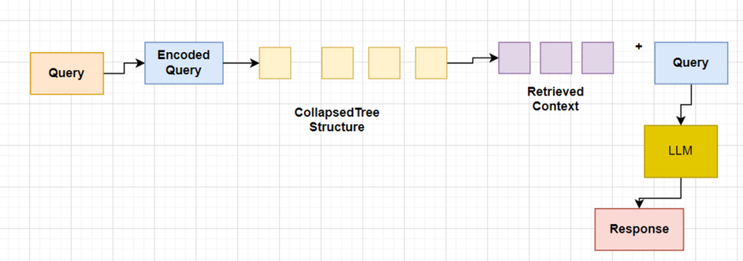 折叠树检索是一种更简洁的方法。它将所有的树结构折叠成一个单一层级,并根据查询向量的余弦相似度检索节点,直到达到一定的词元阈值。