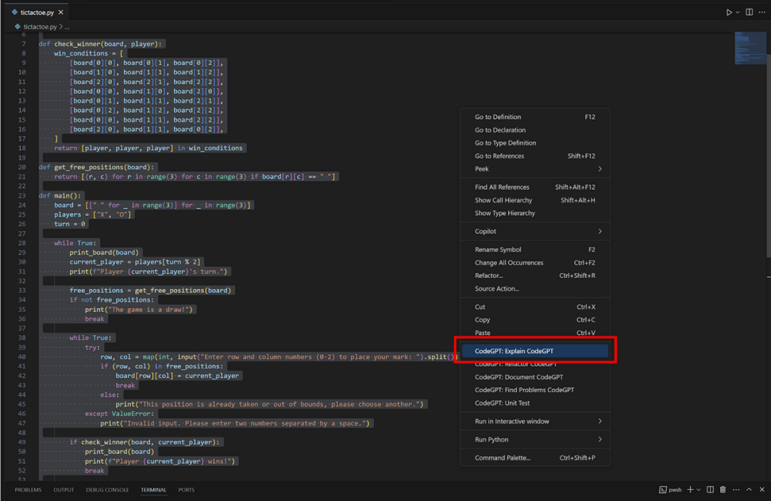 值得注意的是,代码会作为提示输入传递给CodeGPT面板。AI分析代码,并提供了详细的解释。