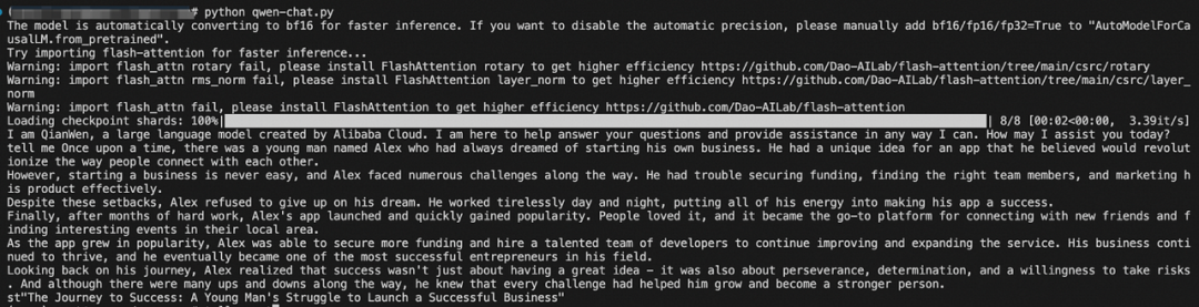 response, history = model.chat(tokenizer, "Any thoughts on the meaning of life, the universe, and everything?", history=history)print("Qwen:", response)