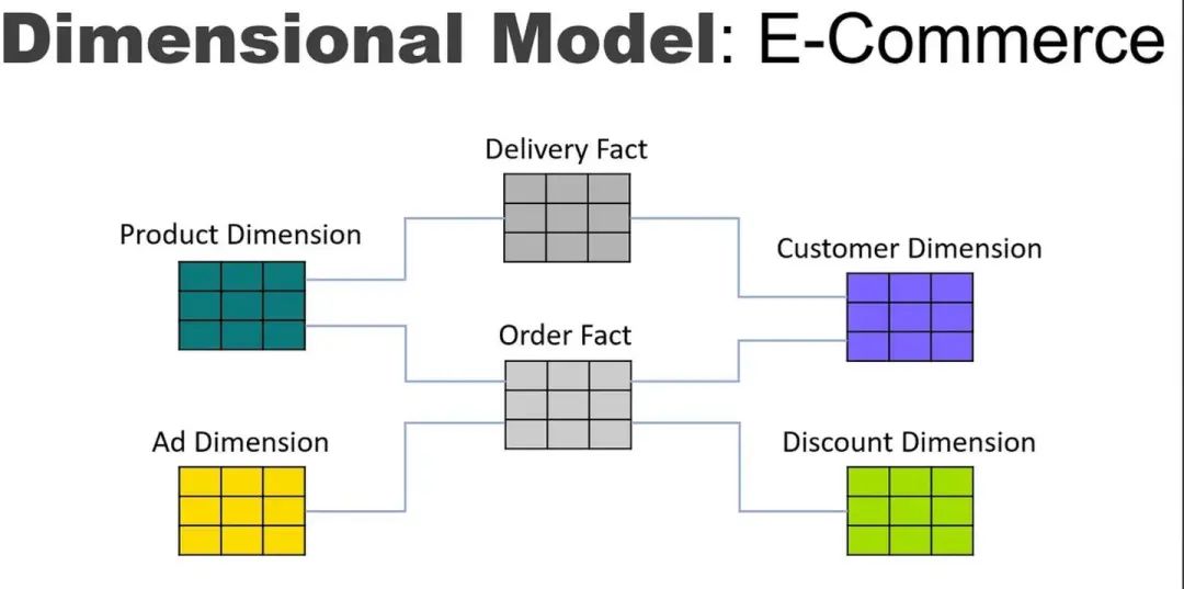 请注意,事实表侧重于事件,维度表表示将业务实体的所有属性组合成一个表。这种以事件为中心的设计可以提高查询速度,但也带来其他问题。每个事件都是一个独立的事实表,从一个事件到相关事件的连接很难看到。在将这些关系拆分到多个事实表之间,很难理解维度实体(如产品)与在另一个维度中的实体(如运营商)共享的所有事件之间的关系。维度模型专注于一次处理一个事件,但模糊了不同事件之间的连接。