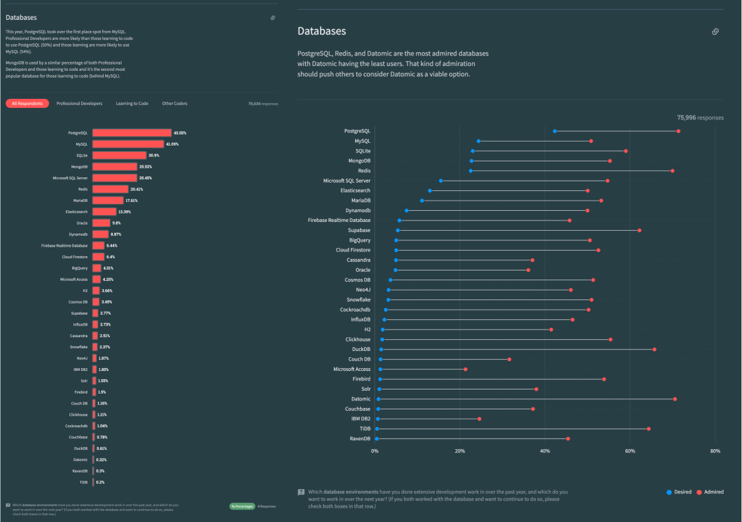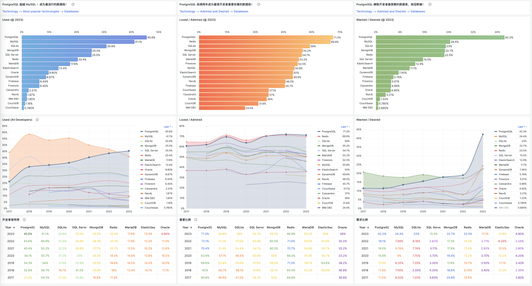 StackOverflow 2023 调研结果,PostgreSQL 三项全能王