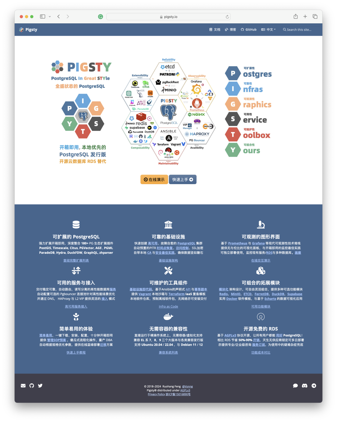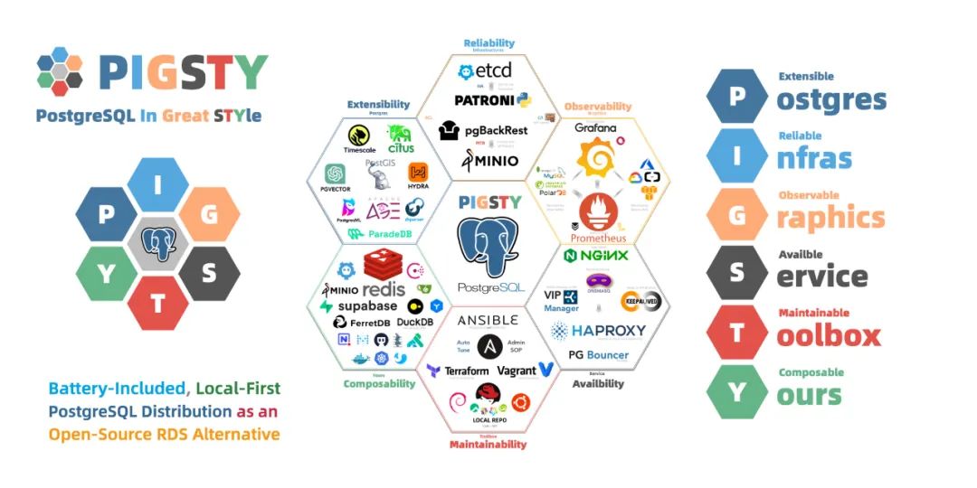 所以我打造了 Pigsty —— 一个开箱即用的开源 PostgreSQL 数据库发行版,旨在凝聚 PostgreSQL 生态扩展的合力,并把提供优质数据库服务的能力普及到每个用户手中。