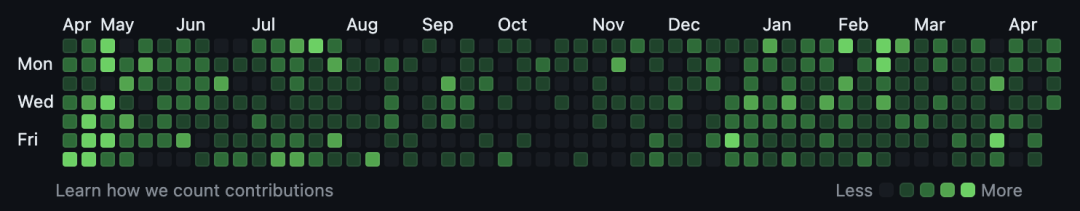 Nebula:虽然你主要在 nebula-go 贡献,但是最开始你是在 nebula-importer 提了一个 PR:https://github.com/vesoft-inc/nebula-importer/pull/291,从而开启你的 Nebula Committer 篇章的。所以,触动你提 PR 的事情是什么呢?HaoXin:我个人在开始使用一个项目之前,会习惯性的大概浏览下代码。有时候看到一些随手的事情就会提一个 PR,这一步的目的很多时候其实是希望知道项目是不是还有人在维护~ 毕竟开源社区其实大多数项目是没人维护的。至于为啥要 push 到上游,两方面,一是这样其实利于长期维护,二是代码质量的提升最好的方式就是更多的使用者与应用场景,fork 使用显然不是上策,除非自己的场景确实偏定制化。同时,Airwallex 是技术型的公司,内部也鼓励社区文化和自驱动,蛮鼓励员工参与开源的。Nebula:不只是 nebula-importer,还有 nebula-python 也有你的 PR 足迹。你持续做开源贡献的动力是什么呢?😂 感觉你的 GitHub 墙也很绿,该不会是一个“刷墙”爱好者吧。图注:HaoXin 的 GitHub 主页