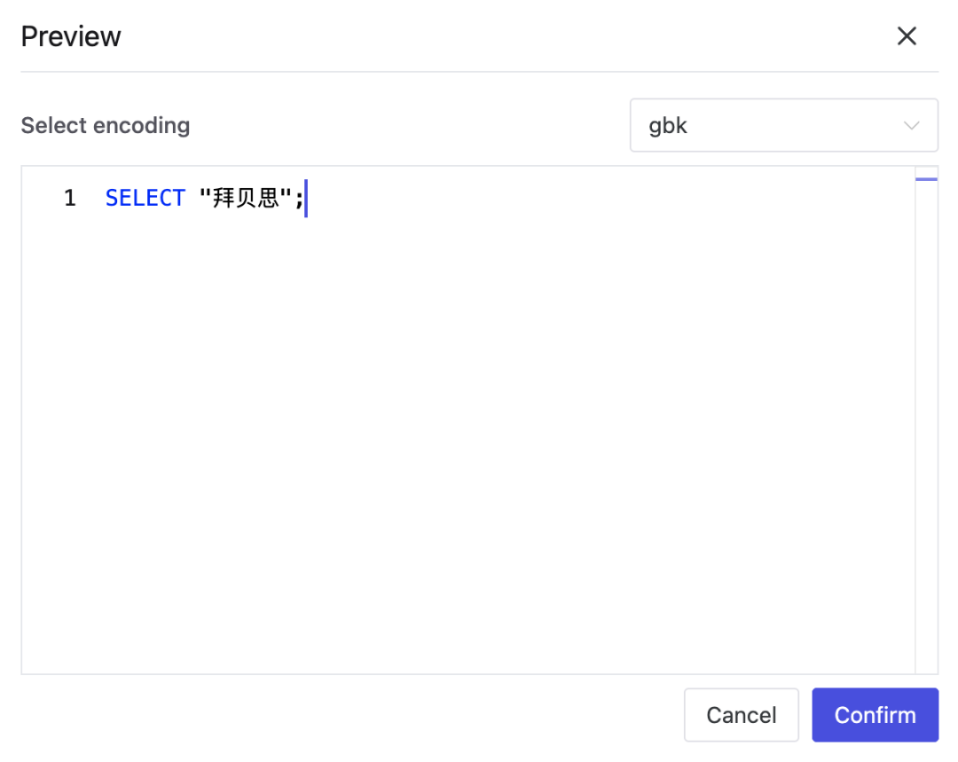 支持在上传 SQL 文件后按照指定的编码格式进行预览。