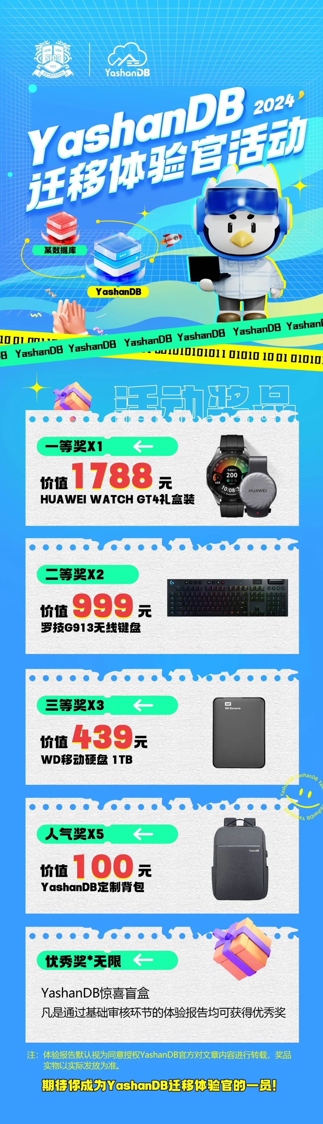2) 文章标题自拟,标题需带前缀「YashanDB迁移体验官」。