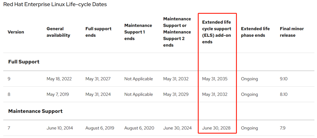 关于红帽7的生命周期,又查询了一下,发现还能挺几年,但是这个额外的维保得花钱购买。