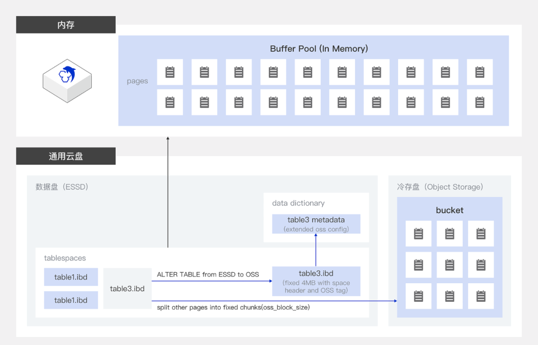 这个问题保证数据归档的功能可用性,让数据库引擎具备使用OSS的能力,能将数据文件存放到OSS中并且不影响正常访问。这一部分又分为引擎内部实现和引擎外部实现两种方式。引擎内部实现,通过让RDS引擎内核能自行访问OSS,并在内核中进行在线数据到归档数据的转换,从而实现使用对象存储OSS;引擎外部实现是借助外部文件系统,为对象存储OSS提供POSIX兼容,让RDS引擎可以像使用本地目录一样使用对象存储OSS。