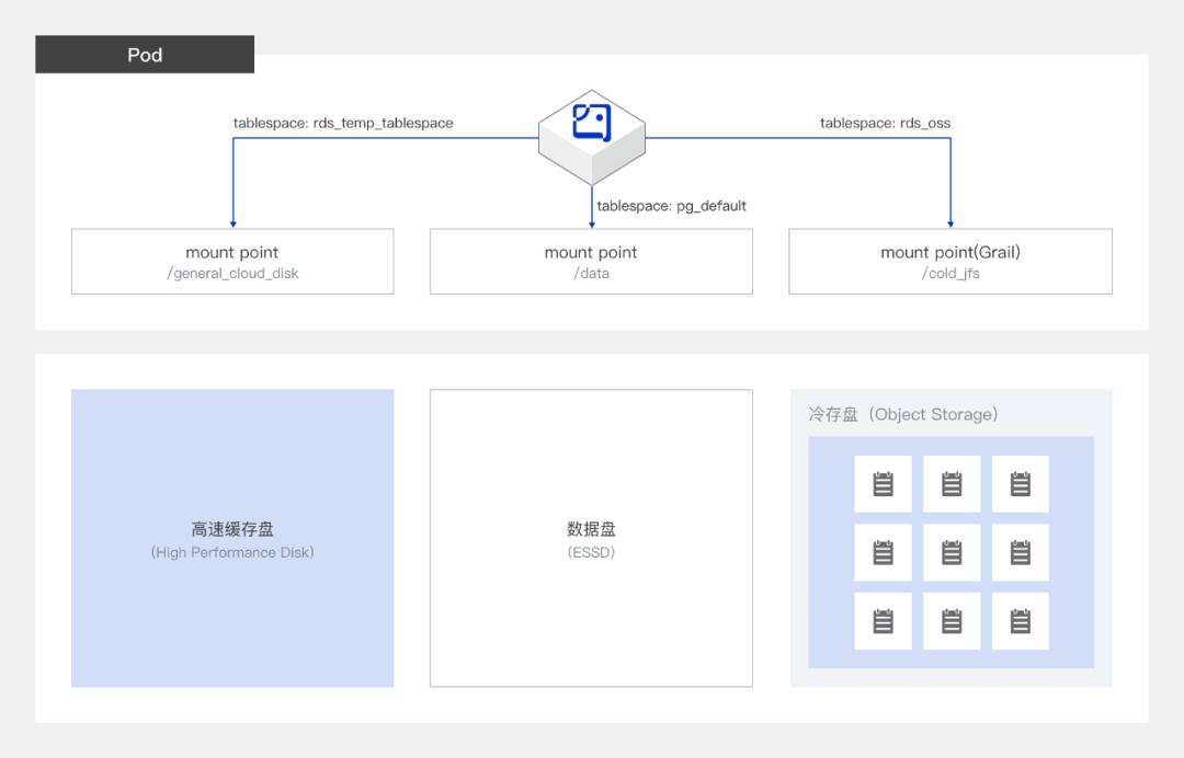 处于rds_oss表空间中的数据会借助Grail文件系统上传到OSS对象存储上,不占用ESSD数据盘空间。rds_oss表空间中的所有表均为归档表,用户可以用正常的查询语句查询归档表中的数据。
