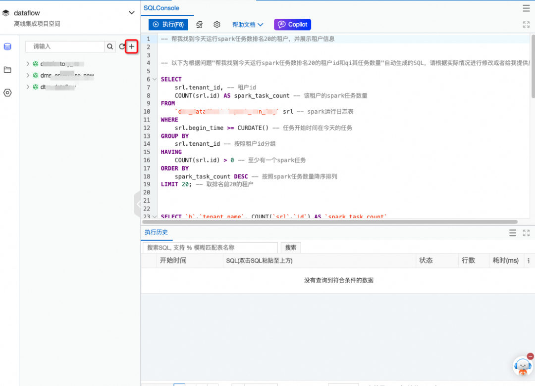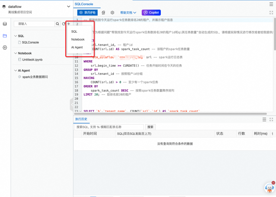 ● 支持通过Copilot以自然语言的方式生成SQL语句(Python生成规划中);