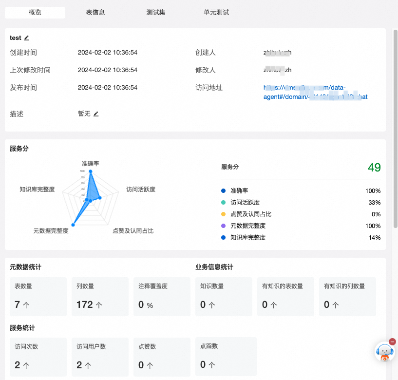 AI Agent是一类数据应用的总称,开发人员可以自主构建对外的智能数据应用,目前DMS支持创建查数Agent应用,开发人员通过“创建Agent->选择Agent涉及表->测试/调试->发布”流程即可快速构建一个查数Agent,通过查数Agent可以让用数人员通过自然语言进行数据查询和分析,应对日常高频多变的查数诉求,且开发可根据日常用数的系统反馈不断调试迭代提升准确性和覆盖面,从而避免让开发、分析人员成为“取数机器”,进一步提升企业数据驱动效率。