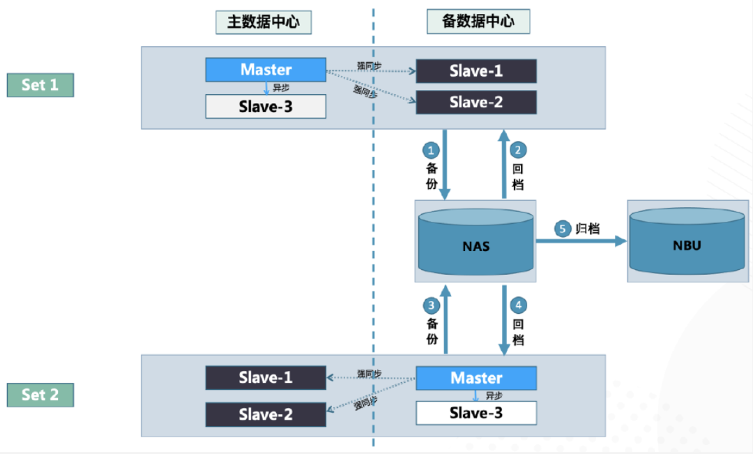 备份以set为单位,一主多备只有一个备库成为备份节点进而完成备份。