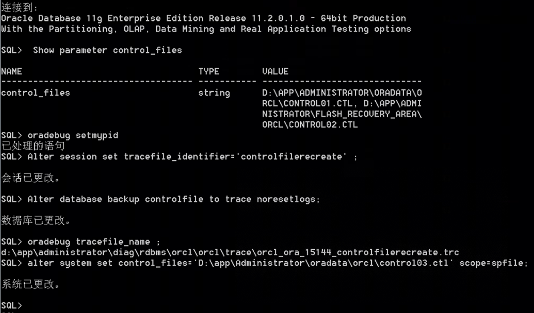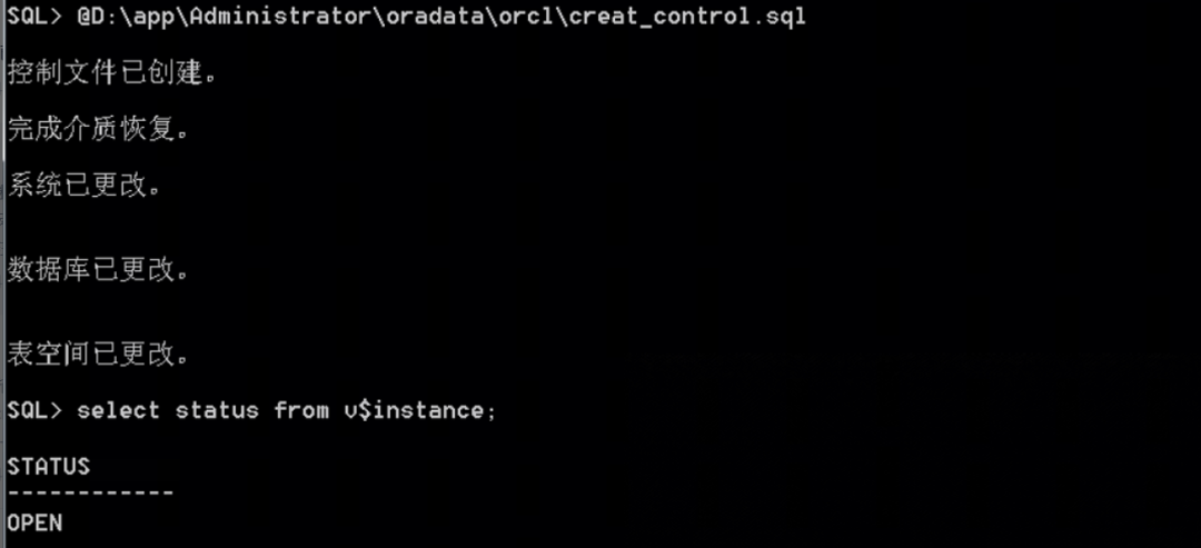 (2)采用oradebug命令生成控制文件创建脚本。执行控制文件重建及开库操作后,数据库最终恢复到46011数据块,并正常打开数据库。