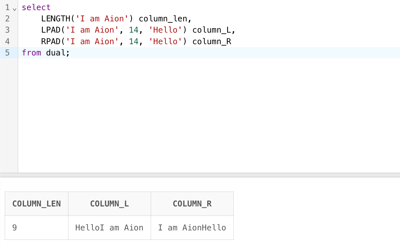 LPAD('I am Aion', 14, 'Hello') column_L,