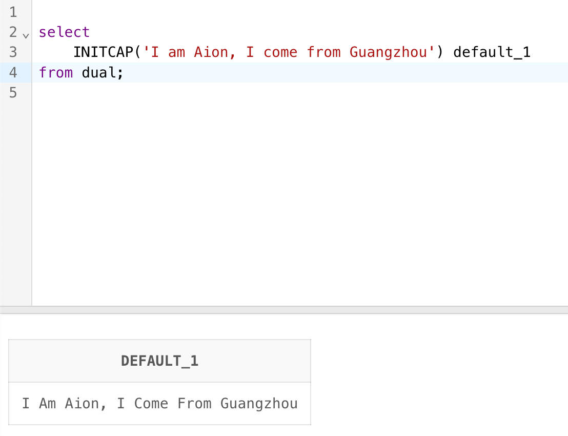 INITCAP('I am Aion, I come from Guangzhou') default_1