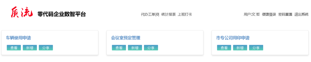 可通过搜索实现数据查询,可点击新增录入数据或发起新流程。