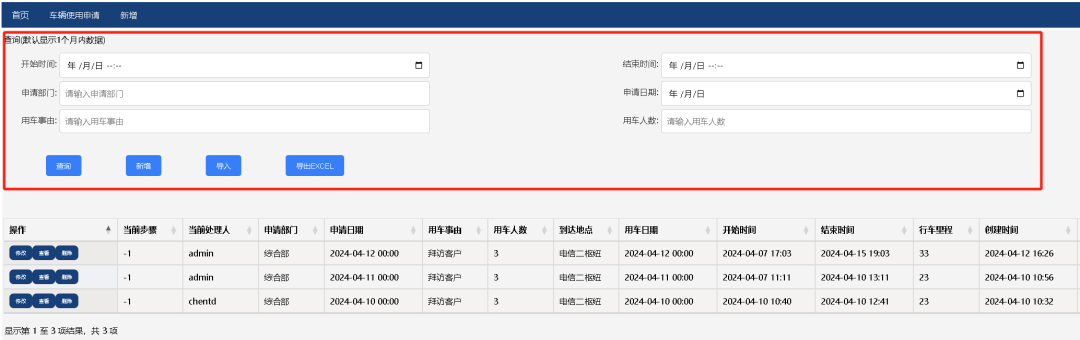 新增:如需新录入数据或发起新流程,可以点击新增进行操作。