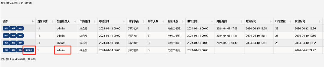 如果有需要自己处理的流程,则当前处理人为自己的账号信息,点击操作的相关按钮即可处理。