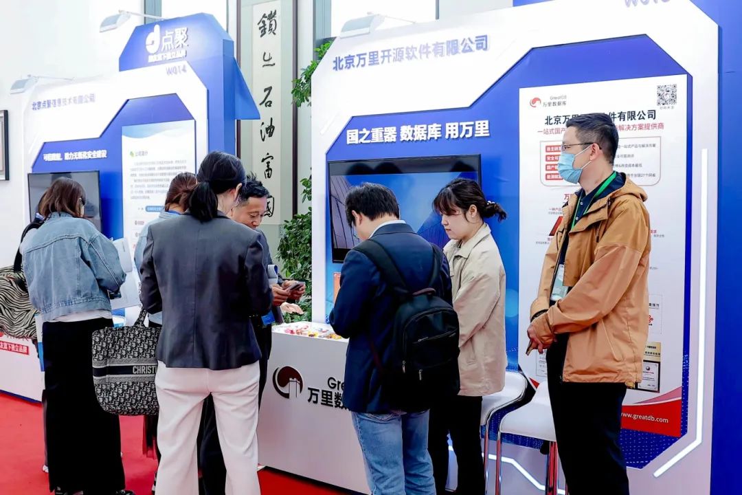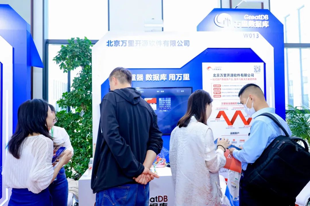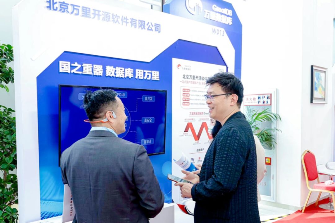 与此同时,万里数据库展台派出多位技术专家交流答疑,吸引了诸多客户嘉宾驻足交流,就万里数据库构建的一站式数据库技术架构及系列产品展开了深入的讨论与信息互换。