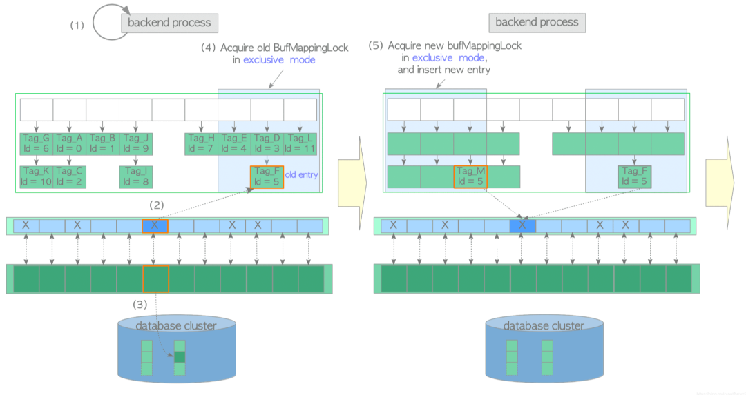 (4)以排他模式获取缓冲区表中旧表项所在分区上的 BufMappingLock。