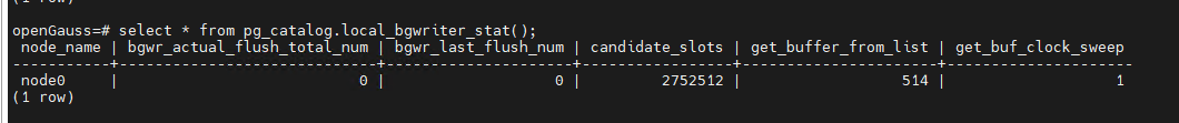 显示本实例的bgwriter线程刷页信息,候选buffer链中页面个数,buffer淘汰信息。