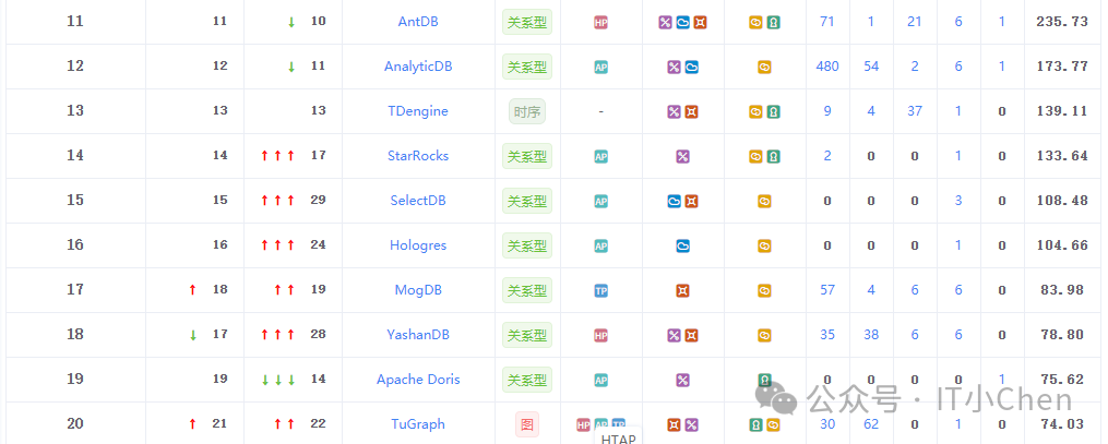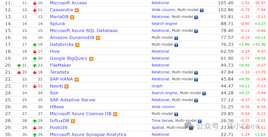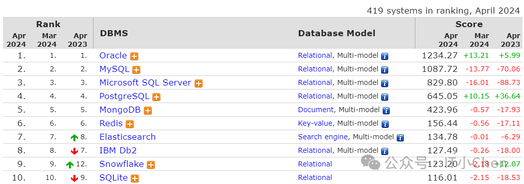 下面是DB-Engines Ranking最新部分排名,仅供参考,数据主要来源: