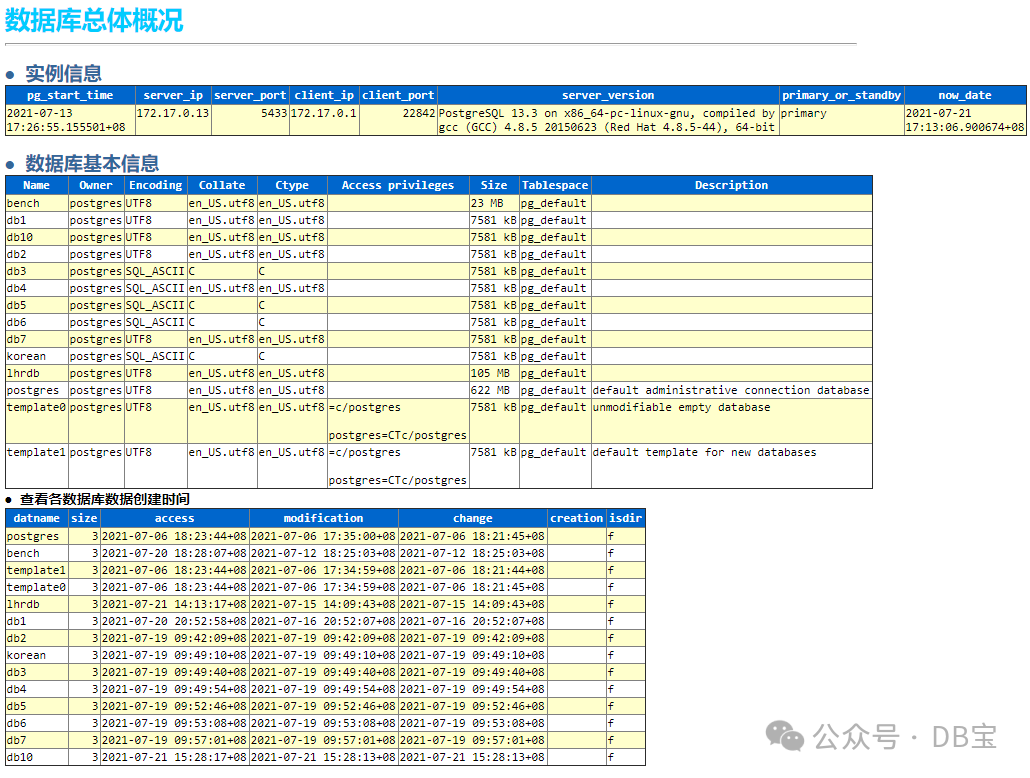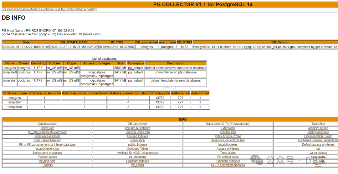 目前在GitHub上有3款免费开源的针对PostgreSQL的巡检脚本,均为sql脚本,均可以生成html报告文件,可以自行修改代码,并自己进行增删相关的功能。