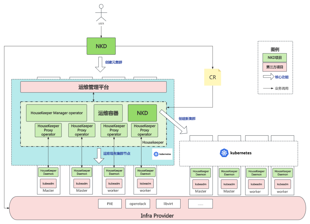 NKD作为NestOS专属容器云部署运维工具,旨在通过在集群外提供一系列服务,涵盖了基础设施和Kubernetes核心组件的部署、更新和配置管理等,使部署和升级流程更加便捷,为用户提供更出色的操作体验,提高整体部署和维护的效率。其主要特点包括: