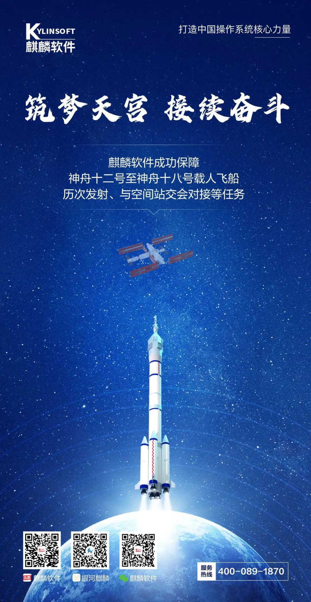 航天事业是勇攀科技高峰的事业,每一步发展都离不开自主创新。在全力支持保障载人航天工程历次重大任务的同时,麒麟软件还“零失误”服务嫦娥逐月、保障天问探火等重大航天任务,为我国航天事业提供坚实基础支撑。未来,麒麟软件将坚定理想信念,勇于担当,不断进取,以安全、稳定、好用的麒麟操作系统产品,服务国计民生,赋能千行百业,为发展新质生产力建功立业。
