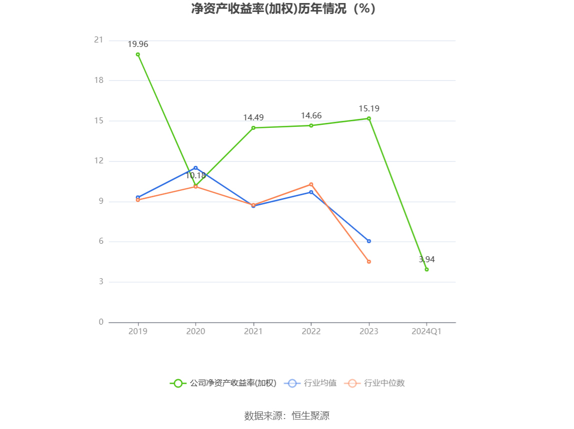 数据显示,2024年第一季度公司加权平均净资产收益率为3.94%,较上年同期下降0.47个百分点;公司2024年第一季度投入资本回报率为1.94%,较上年同期下降0.25个百分点。