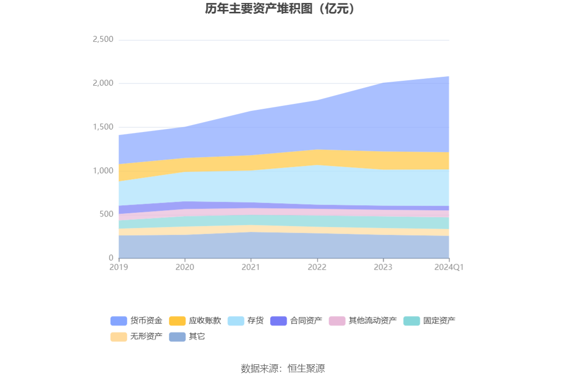 资产重大变化方面,截至2024年一季度末,公司货币资金较上年末增加10.61%,占公司总资产比重上升2.60个百分点;应收账款较上年末减少4.81%,占公司总资产比重下降0.85个百分点;应收款项融资较上年末减少30.95%,占公司总资产比重下降0.68个百分点;存货较上年末增加1.34%,占公司总资产比重下降0.48个百分点。