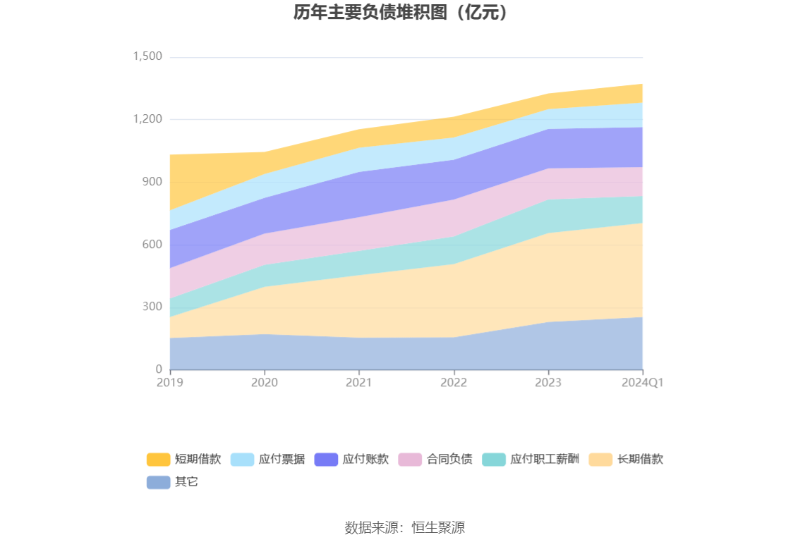 负债重大变化方面,截至2024年一季度末,公司应付职工薪酬较上年末减少19.95%,占公司总资产比重下降1.84个百分点;长期借款较上年末增加5.81%,占公司总资产比重上升0.42个百分点;应付票据较上年末增加24.53%,占公司总资产比重上升0.94个百分点;一年内到期的非流动负债较上年末增加58.52%,占公司总资产比重上升0.79个百分点。