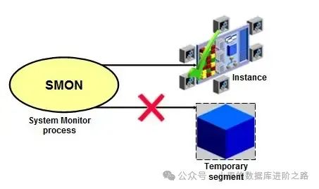 SMON: 当实例崩溃后,DB-buffer-cache中的脏块没写盘,下次启动后需要用数据文件中的数据块(历史版本)和redo进行恢复,实例恢复则由此进程完成,并且当内存中的临时段长时间没使用时,由SMON清理掉