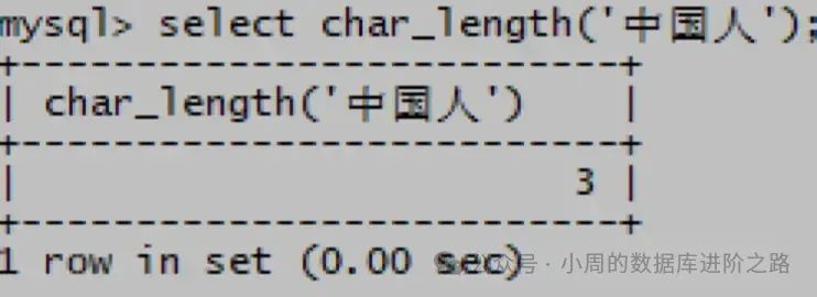mysql> select char_length(‘中国人’);