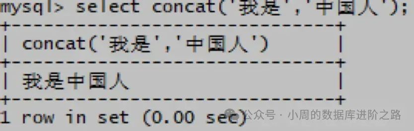 mysql> select concat(‘我是’,‘中国人’);