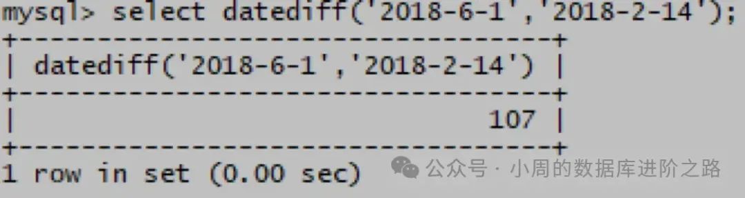 mysql> select datediff(‘2018-6-1’,‘2018-2-14’);