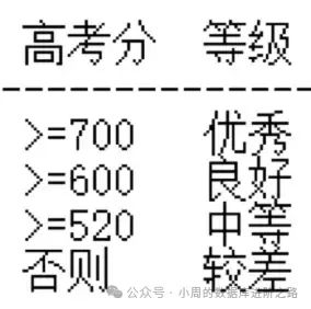 如果考分700以上,优秀,600以上,良好,520以上,中等,否则,较差,按照这个原则列出学生表中的学生,显示姓名,考分,和评判等级