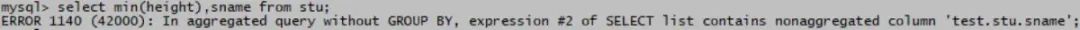 报错语法错误了:min(height)只有1个值1行,sname有20行,1行对接20行是个矛盾的事情,因此不能这么写。
