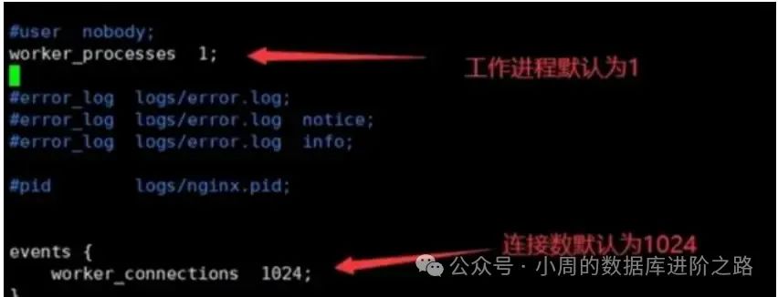 worker 进程数默认为 1 ,单进程最大连接数为1024
