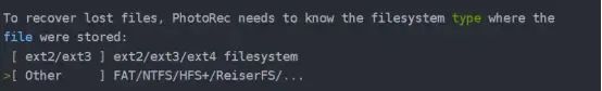 选择XFS分区,file opt可以选择修复的文件类型,如txt压缩等等,最后选择search继续